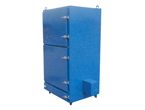 工作原理:含塵氣體進入箱體,由扁布袋過濾器進行過濾,粉塵被阻留在濾袋外表面,已凈化的氣體通過過濾袋進入風機,由風機吸入直接排入室內(也可接管排至室外)。